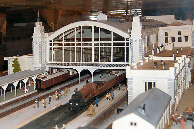 | In diesem Bahnhof, der leider im Jahre 1943 seines Hallendachs beraubt wurde, um Eisen für die Waffenerzeugung zu gewinnen, ist das Eisenbahnmuseum untergebracht. Und leider stehen die wertvollen Loks dort dauernd unter freiem Himmel und sind Wind und Wetter ausgesetzt. | |||